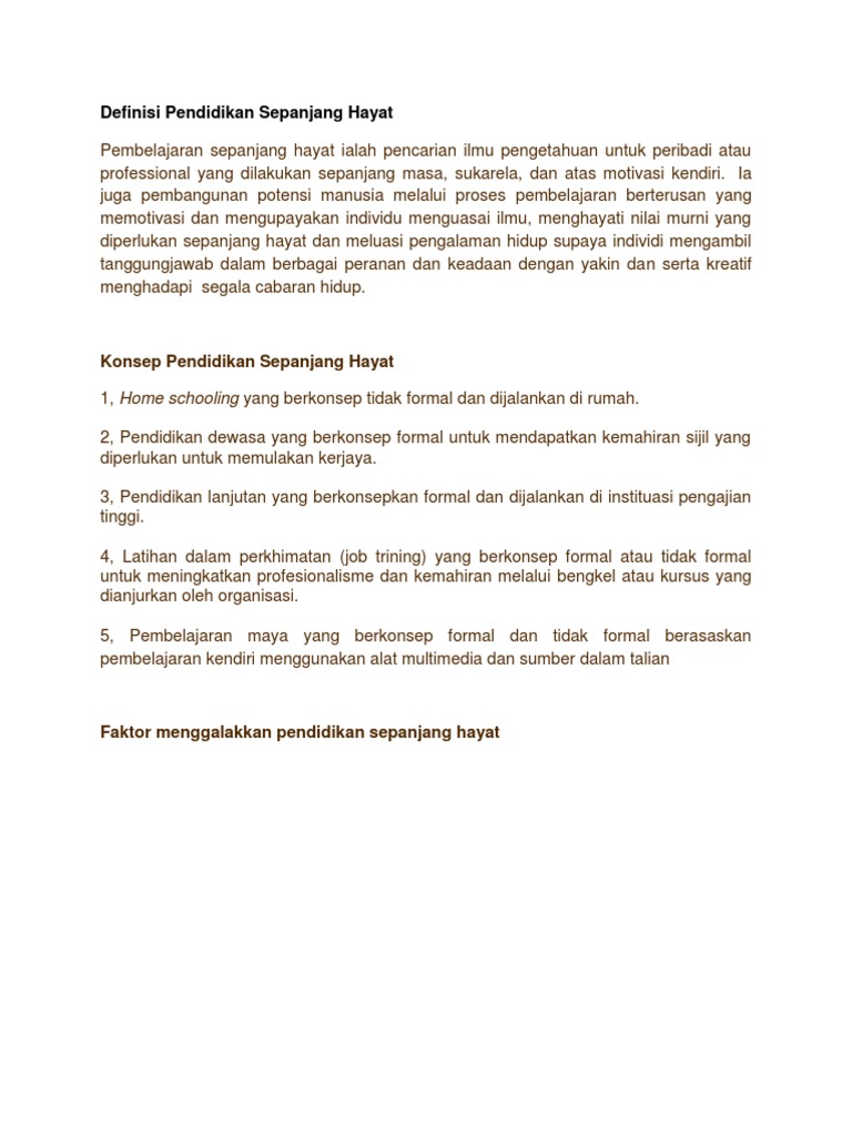 Konsep Pendidikan Sepanjang Hayat : Have you come across sites that require you to tweet before.. Konsep pendidikan islam sepanjang hayat (pdf) | portal rasmi. Pada konsep ini pendidikan sepanjang hayat menitikberatkan pada keluarga karena pada konsep pendidikan sepanjang hayat ini peran keluarga sangatlah penting dalam mendidik dan memberikan motivasi terhadap individu agar dapat memperoleh pengalaman belajar secara berkelanjutan. This demo content brought to you by momizat team. Apa sih itu pendidikan sepanjang hayat kenapa bisa menjadi sangat penting bagi kita.pendidikan sepanjang hayat adalah suatu konsep dimana sesorang atau individu dengan. Belajar sepanjang hayat, membawa makna: