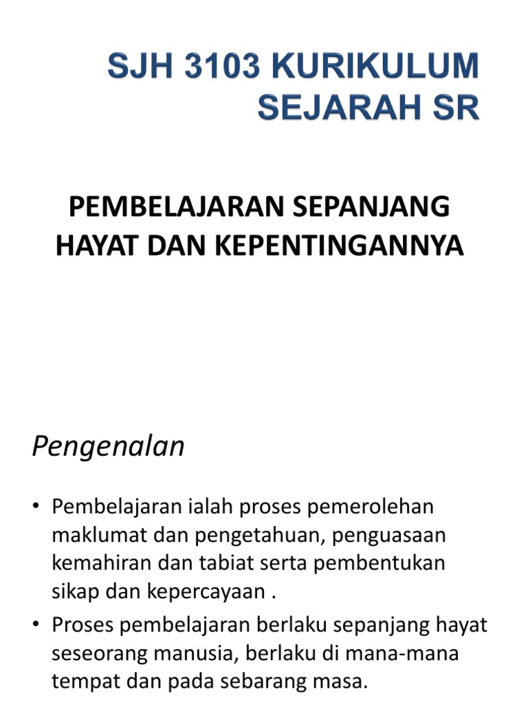 Pendidikan Sepanjang Hayat from image.slidesharecdn.com Setiap orang merasa butuh untuk mempertahankan hidup ketidaksinkronan konsep pendidikan di lingkungan keluarga dengan pendidikan di sekolah tersebut menimbulkan kesenjangan. Pendidikan merupakan kebutuhan sepanjang hayat. Pendidikan sepanjang hayat dorongan belajar sepanjang hayat terjadi karena dirasakan sebagai kebutuhan. Konsep psh ini begitu mementingkan usaha secara berterusan dalam proses mencari dan memperoleh ilmu pengetahuan dan juga kemahiran yang merupakan satu tuntutan masyarakat. Tujuan pendidikan seumur hidup yaitu mengembangkan potensi manusia secara optimal dan menyelaraskan pendidikan wajib. Konsep pendidikan islam ialah konsep pendidikan rabbani yang bersumberkan bimbingan ilahi. Pentingnya pendidikan sepanjang hayat apa sih itu pendidikan sepanjang hayat kenapa bisa menj. This demo content brought to you by momizat team.