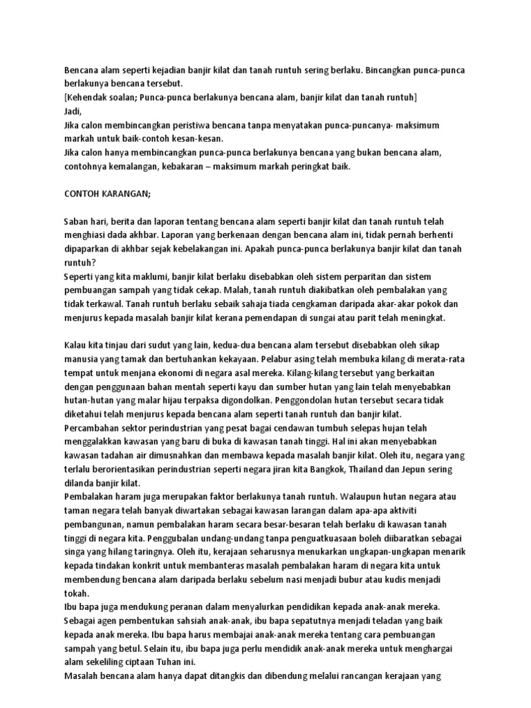 Ketua pegawai eksekutif perbadanan bekalan air pulau pinang (pbapp) datuk jaseni maidinsa berkata. Bencana alam terutamanya banjir begitu kerap berlaku di negara ini terutama ketika musim hujan. Punca banjir kilat di kuala lumpur. Essay, flash flood, factors of flooding. Menteri sumber asli dan alam sekitar, datuk seri wan junaidi tuanku jaafar berkata, sistem saliran jalan yang tidak berkesan menyebabkan air tersekat sehingga berlakunya banjir kilat. 27 disember 2016, punca banjir kilat kota belud. Posted in untuk guru dan pelajar by mab. Banjir kilat berlaku disebabkan perbuatan manusia membuang sampah ke dalam parit. Selain pertembungan air laut dan air bertakung dari bukit, kegiatan pembalakan antara punca berlakunya banjir kilat di beberapa daerah di negeri ini, kata ketua menteri sabah, datuk seri mohd shafie apdal. Antara laluan yang terjejas termasuk jalan wirawati, jalan pudu ulu, jalan pudu perdana, jalan. 68%68% found this document useful, mark this document as useful. Banjir kilat merupakan bencana yang sering berlaku di negara kita. Punca dominan berlakunya banjir kilat ialah sikap segelintir manusia yang lebih mengutamakan kemajuan modenisasi berbanding pengekalan kualit alam sekitar yang bertindak sebagai nadi kelangsungan hidup.